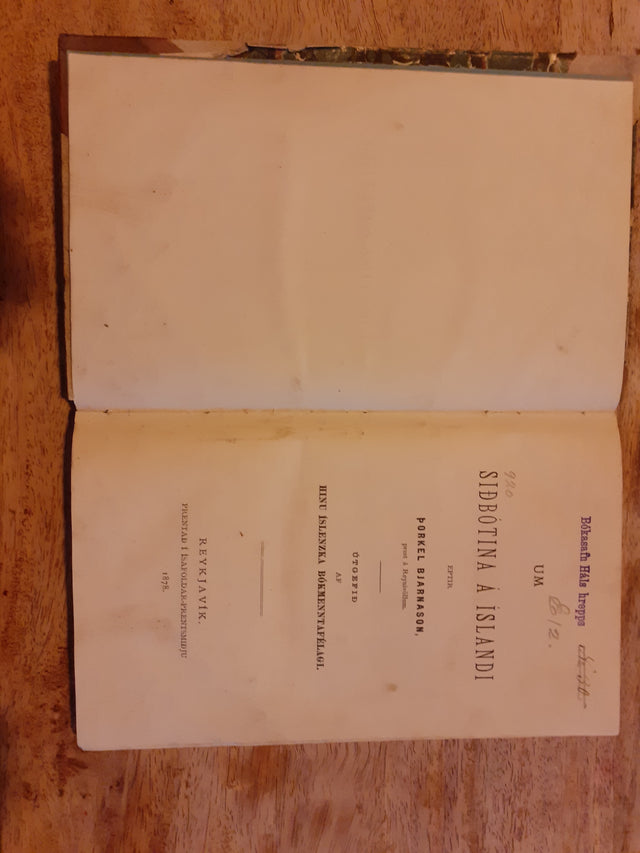 This book published by Ísafoldarprentsmiðja in 1878 is by reverend Þorkell Bjarnason about the reformation in Iceland. Published by Hið Íslenska bókmenntafélag.